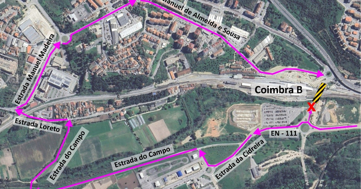 O trânsito entre a rotunda de acesso sul do tabuleiro inferior da ponte Açude e a rotunda de acesso sul ao túnel da estação de Coimbra-B vai estar condicionado até dia 9 de agosto devido a trabalhos no Âmbito da empreitada de execução de “Conduta Adutora até ao Açude/ Ponte e Emissário do Setor Central I – Troço entre a Estação Nova e o Açude/ Ponte”